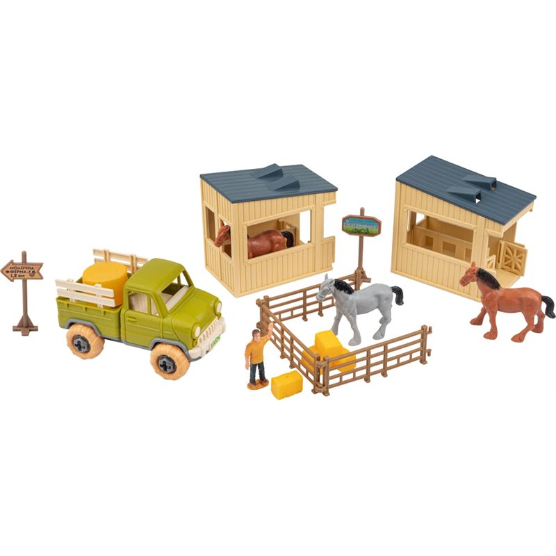 Ігровий набір OTAMANKO «Веселий хутір» подарує дітям захопливу фермерську пригоду з вантажівкою та конюшнею. Набір розвиває моторику та логіку завдяки можливості збирати вантажівку за допомогою викрутки. Безпечні деталі з гладкими краями гарантують комфортну гру. У комплекті: