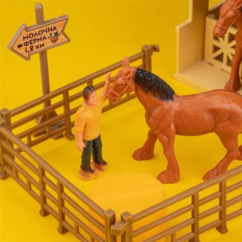 - Стайня, фігурки фермера, тваринок та додаткові аксесуари