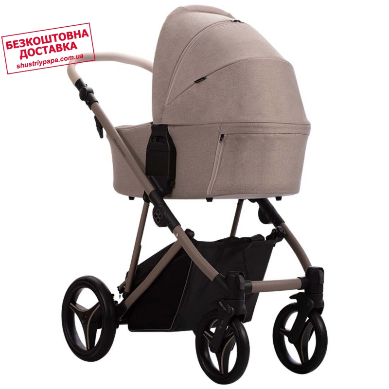 Pelpasso це абсолютно новий продукт від відомої торгівельної марки Bebetto, у ньому поєднюється легкий та зручний прогулянковий блок та комфортна люлька а сучасні функції поєднуються з привабливим дизайном. Прогулянковий візок Pelpasso доступний з двома каркасами, які ідеально доповнюють стриману оббивку. Версія Choco підкорює своїм глибоким кавовим кольором. Версія Kaszmir, навпаки, ідеально підходить для тих, хто цінує унікальні, ніжні кольори. Люлька коляски Pelpasso розроблена з урахуванням найвищого рівня комфорту та безпеки. Товстий матрац м’який, приємний на дотик і зручний для вашої дитини. Регульований капюшон з інтегрованою вентиляційною панеллю гарантує оптимальні умови під час кожної поїздки – незалежно від погоди. У спекотні дні додаткова вентиляційна панель у передній частині люльки забезпечує вільний потік повітря. Зовнішнє регулювання підголівника дозволяє розташувати дитину в оптимальному положенні. Капюшон оснащений зручною ручкою для перенесення, яку також можна швидко регулювати одним рухом руки. Додаткова знімна панель на чохлі захищає вашу дитину від холодних поривів вітру, а практичне оглядове віконце дозволяє підтримувати зоровий контакт з вашим малюком. Люлька Pelpasso надзвичайно легка, важить лише 12 кг у глибокому варіанті. Завдяки використанню EPP вона забезпечує чудову теплоізоляцію, а також її легко переносити. Люльку коляски Pelpasso можна легко скласти, що полегшує її транспортування та зберігання – ідеально підходить, коли люлька більше не використовується або коли ви хочете перевозити її в багажнику автомобіля. Прогулянковий блок для коляски Pelpasso поєднує сучасну функціональність з компактним дизайном. Завдяки функції складання «сендвіч» коляска надзвичайно зручна та легка в транспортуванні. П'ятиточковий регульований ремінь безпеки «росте» разом з вашою дитиною, забезпечуючи комфорт на кожному етапі її розвитку. Магнітні ремені дозволяють швидко та зручно закріпити дитину в колясці. Спинка прогулянкового блоку регулюється від сидячого до лежачого положення. Підніжка у прогулянковому блоці також регулюється. Широкий діапазон регулювань козирька Pelpasso захищає вашу дитину від сонця, вітру та інших несприятливих погодних умов. Компактний складений розмір та система блокування запобігають випадковому розкладанню роблять коляску Pelpasso ідеальним супутником для щоденних прогулянок – і для тривалих подорожей. У складеному вигляді коляску можна носити на плечі за допомогою додаткового ременя. Коляска може похвалитися чудовою якістю їзди. Системи SAS та DMS, поглинаючи удари та запам'ятовуючи положення колеса після відриву від землі, забезпечують чудове поглинання вібрацій, навіть під час їзди по нерівних поверхнях. Амортизатори також пропонують регульовану м'яку або жорстку підвіску. Варто зазначити, що алюмінієва рама робить коляску Pelpasso дуже легкою.
