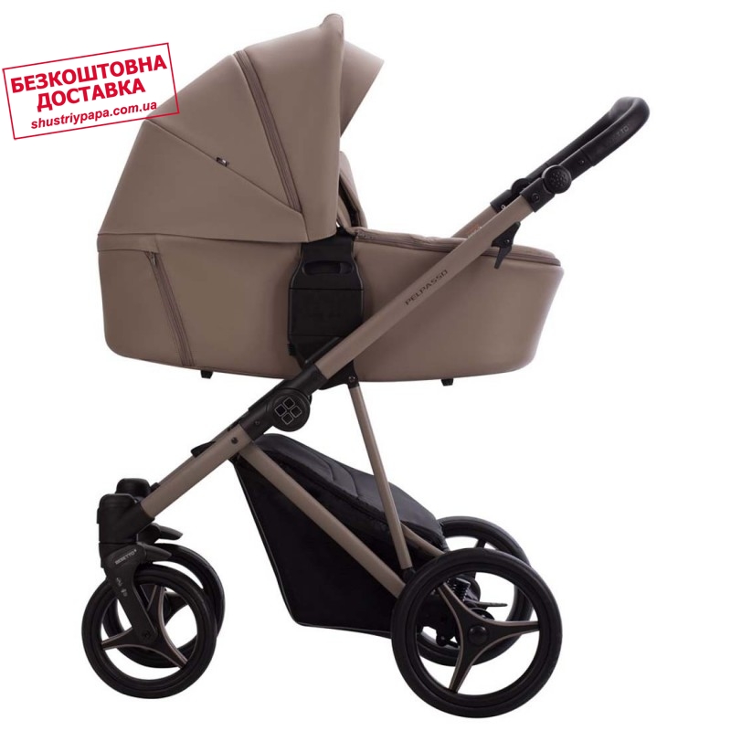Pelpasso Pro це абсолютно новий продукт від відомої торгівельної марки Bebetto, у ньому поєднюється легкий та зручний прогулянковий блок та комфортна люлька а сучасні функції поєднуються з привабливим дизайном. Прогулянковий візок Pelpasso Pro доступний з двома каркасами, які ідеально доповнюють стриману оббивку. Версія Choco підкорює своїм глибоким кавовим кольором. Версія Kaszmir, навпаки, ідеально підходить для тих, хто цінує унікальні, ніжні кольори. Версія коляски Pelpasso Pro отримала оббивку з еко-шкіри. Люлька коляски Pelpasso Pro розроблена з урахуванням найвищого рівня комфорту та безпеки. Товстий матрац м’який, приємний на дотик і зручний для вашої дитини. Регульований капюшон з інтегрованою вентиляційною панеллю гарантує оптимальні умови під час кожної поїздки – незалежно від погоди. У спекотні дні додаткова вентиляційна панель у передній частині люльки забезпечує вільний потік повітря. Зовнішнє регулювання підголівника дозволяє розташувати дитину в оптимальному положенні. Капюшон оснащений зручною ручкою для перенесення, яку також можна швидко регулювати одним рухом руки. Додаткова знімна панель на чохлі захищає вашу дитину від холодних поривів вітру, а практичне оглядове віконце дозволяє підтримувати зоровий контакт з вашим малюком. Люлька Pelpasso Pro надзвичайно легка, важить лише 12 кг у глибокому варіанті. Завдяки використанню EPP вона забезпечує чудову теплоізоляцію, а також її легко переносити. Люльку коляски Pelpasso Pro можна легко скласти, що полегшує її транспортування та зберігання – ідеально підходить, коли люлька більше не використовується або коли ви хочете перевозити її в багажнику автомобіля. Прогулянковий блок для коляски Pelpasso Pro поєднує сучасну функціональність з компактним дизайном. Завдяки функції складання «сендвіч» коляска надзвичайно зручна та легка в транспортуванні. П'ятиточковий регульований ремінь безпеки «росте» разом з вашою дитиною, забезпечуючи комфорт на кожному етапі її розвитку. Магнітні ремені дозволяють швидко та зручно закріпити дитину в колясці. Спинка прогулянкового блоку регулюється від сидячого до лежачого положення. Підніжка у прогулянковому блоці також регулюється. Широкий діапазон регулювань козирька Pelpasso Pro захищає вашу дитину від сонця, вітру та інших несприятливих погодних умов. Компактний складений розмір та система блокування запобігають випадковому розкладанню роблять коляску Pelpasso Pro ідеальним супутником для щоденних прогулянок – і для тривалих подорожей. У складеному вигляді коляску можна носити на плечі за допомогою додаткового ременя. Коляска може похвалитися чудовою якістю їзди. Системи SAS та DMS, поглинаючи удари та запам'ятовуючи положення колеса після відриву від землі, забезпечують чудове поглинання вібрацій, навіть під час їзди по нерівних поверхнях. Амортизатори також пропонують регульовану м'яку або жорстку підвіску. Варто зазначити, що алюмінієва рама робить коляску Pelpasso Pro дуже легкою.