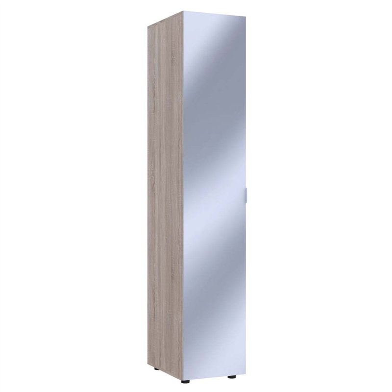 Шафа-пенал Doros Гелар - це ідеальне рішення для організації вашого простору. Її елегантний та сучасний дизайн додадуть естетичного вигляду будь-якому інтер'єру. Завдяки продуманим розмірам, ця шафа не лише виглядає стильно, але й забезпечує достатньо місця для зберігання вашого одягу та аксесуарів. Вона стане незамінним елементом у вашій спальні або вітальні, допомагаючи підтримувати порядок та затишок. Шафа Doros Гелар складається із однієї дверки на якій закріплено дзеркало. Завдяки дзеркалу, яке візуально розширює простір, ви зможете насолоджуватися комфортом і функціональністю у вашій спальні або вітальні. Внутрішня частина шафи розділена на полички. Шафа-пенал виготовлена із якісного ламінованого ДСП товщиною 16 мм, а задня стінка з ДВП товщиною 2,6 мм. Розміщена шафа на регулюємій ніжкці-стоп Н30.