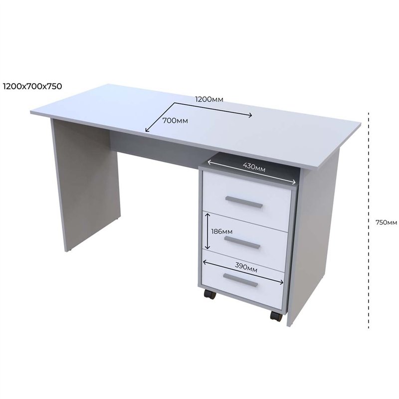 Стіл офісний Doros Т3 з тумбою на 3 шухляди 120х60 Сірий/Білий