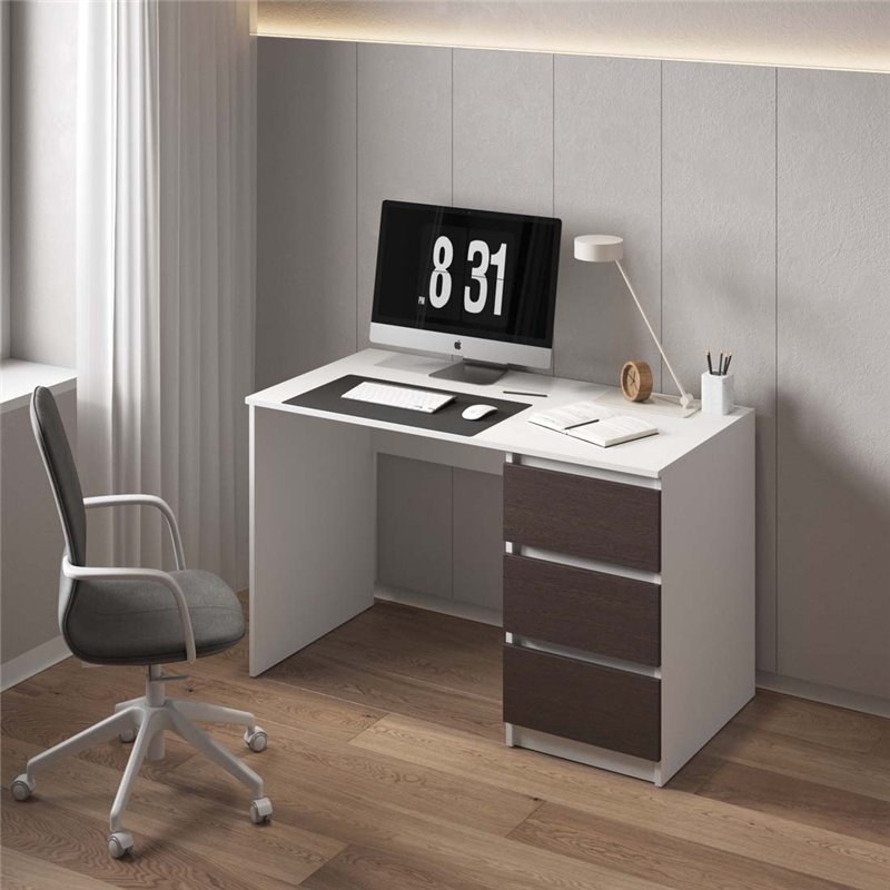 Стіл письмовий Vays R-1, 3 шухляди (праворуч) Білий-Венге Темний фасад