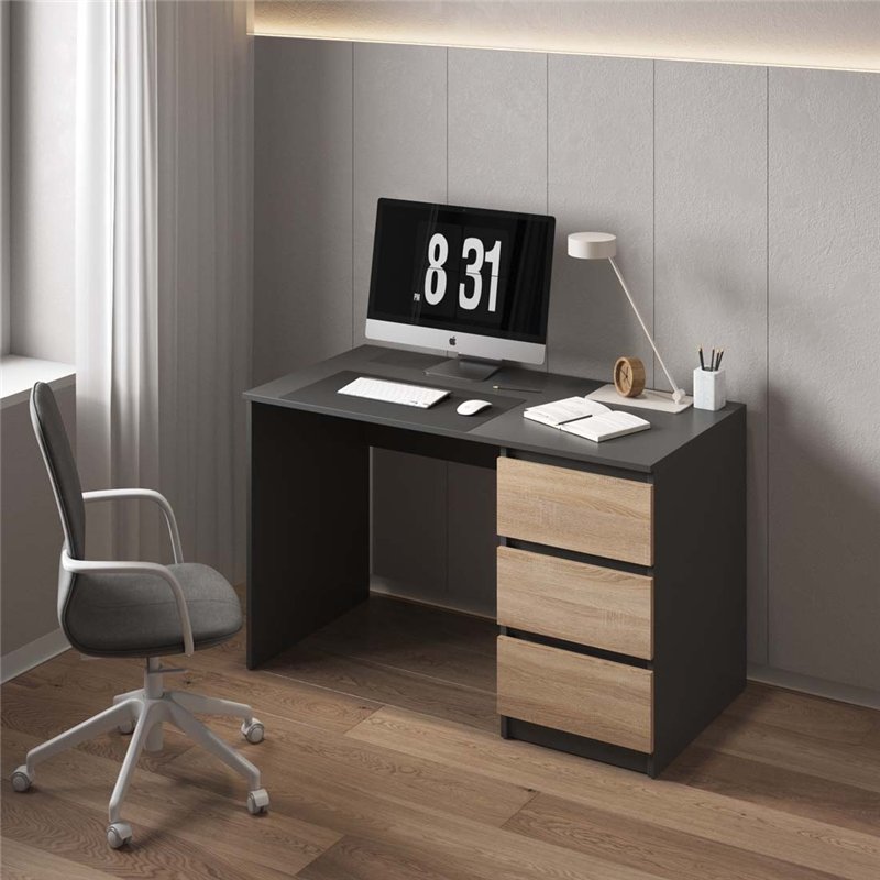Стіл письмовий Vays R-1, 3 шухляди (праворуч) Антрацит-Дуб Сонома фасад