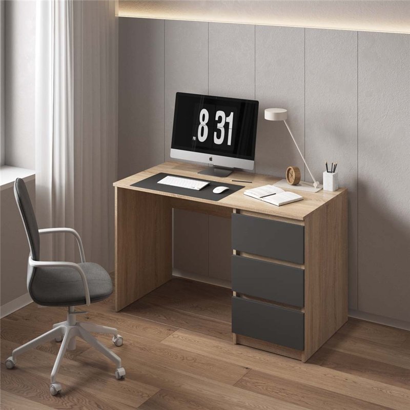 Стіл письмовий Vays R-1, 3 шухляди (праворуч) Дуб Сонома-Антрацит фасад