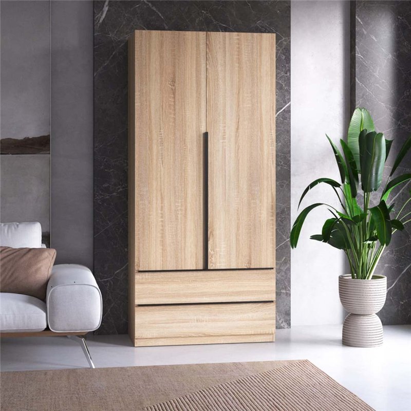 Шафа розпашна Vays M-30 - це функціональне рішення для спальні, вітальні чи передпокою. Завдяки продуманому наповненню — дві шухляди, штанга для вішаків та полиці — шафа зручно підходить для зберігання одягу, білизни, аксесуарів і взуття. Мінімалістичний дизайн без ручок додає сучасності, а міцна конструкція з Ламінованого ДСП товщиною 16 мм гарантує довговічність. Компактні розміри дозволяють розмістити шафу навіть у невеликому приміщенні.