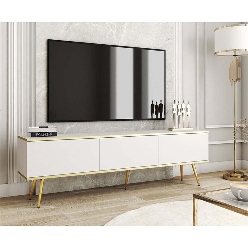Комод-тумба під ТВ Perfect Home Oro RTV175 на 3 дверки Біла з золотими ніжками