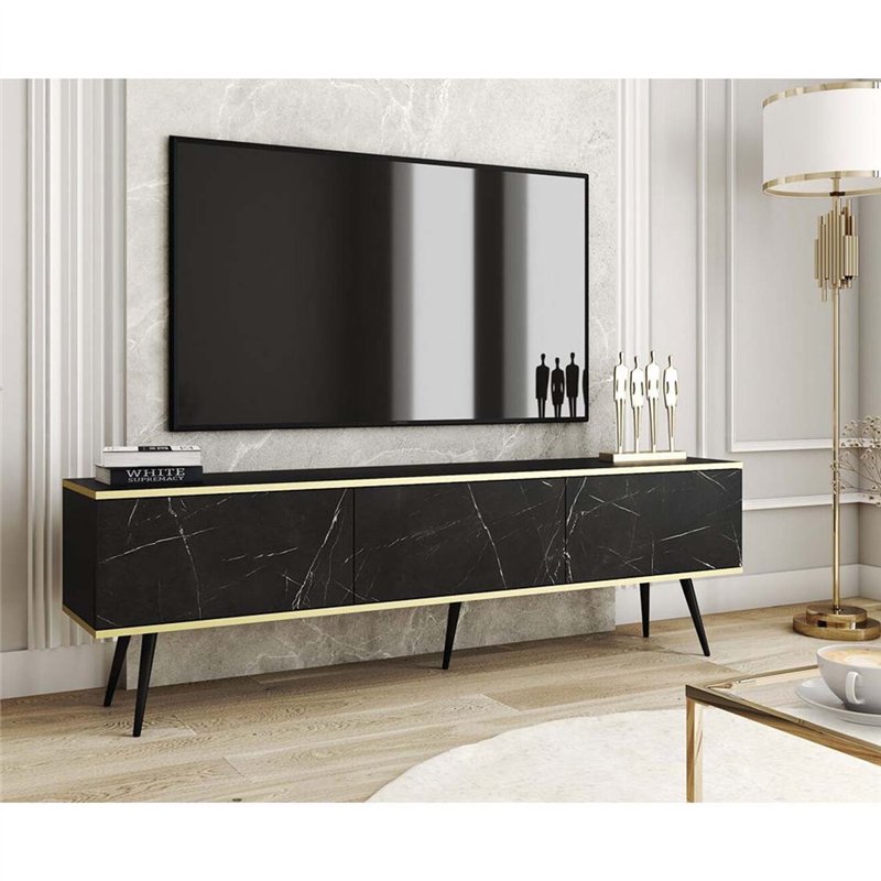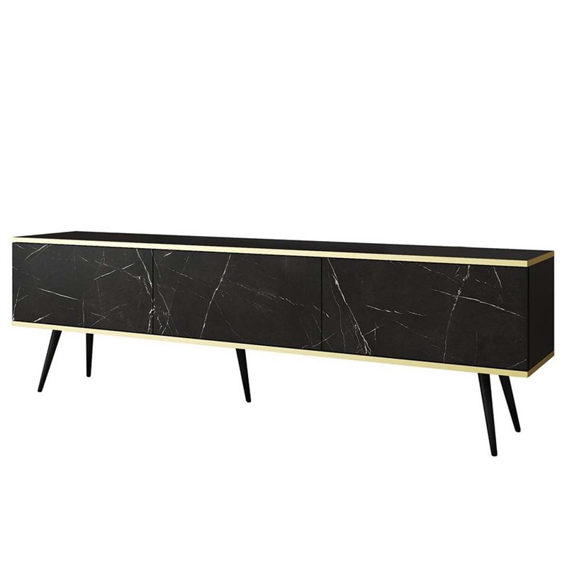 Комод-тумба під ТВ Perfect Home Oro RTV175 на 3 дверки Чорний мармур з чорними ніжками