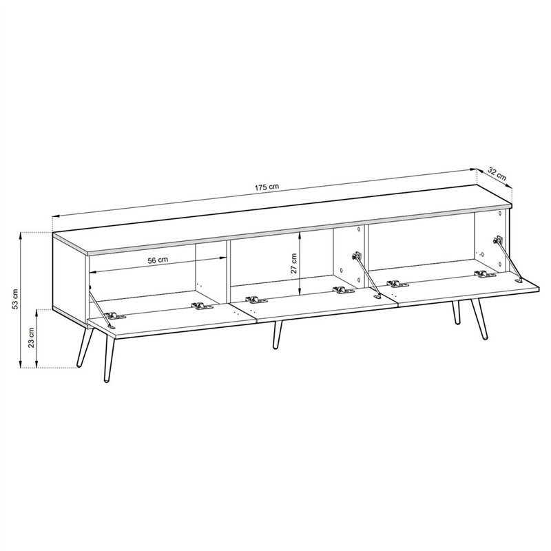 Завдяки сучасному дизайну навісної комод-тумби під ТВ Perfect Home Oro RTV175 MDF цей сучасний предмет дизайнерського рішення органічно впишеться в інтер'єр вашої спальні, або вітальні. Додаткового акценту нададуть структурні фасади які виготовленні згідно сучасних трендів. Тумба призначена для тривалої експлуатації і здатна витримувати великі навантаження. Корпус тумби виготовлений із якісного ламінованого ДСП товщино 16 мм, а фасад із МДФ товщиною 18 мм. Завдяки використанню в тумбі Oro RTV175 MDF якісної фурнітури вона буде служити вам довго і приносити задоволення від приємної покупки. Тумба має 3 дверки, які відкриваються завдяки системі push-to-open. Золоті металеві ніжки, на яких стоїть тумба, додадуть акценту вашому дизайн-проекту.