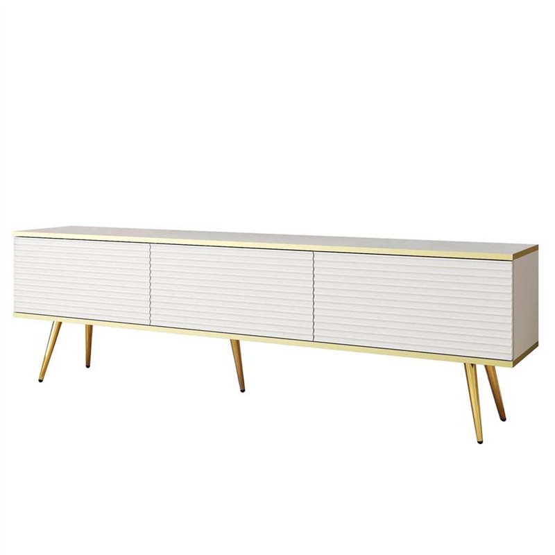 Комод-тумба під ТВ навісна Perfect Home Oro RTV175 MDF на 3 дверки Біла з золотими ніжками