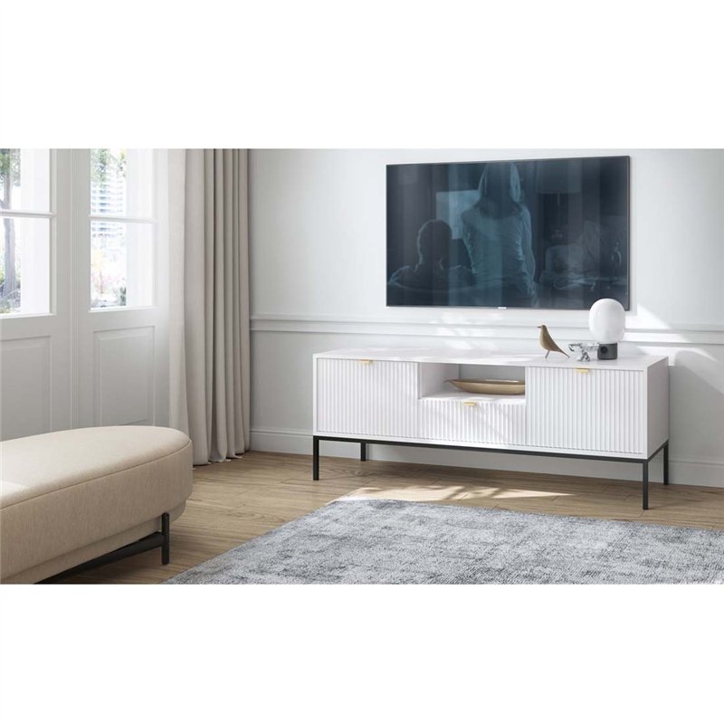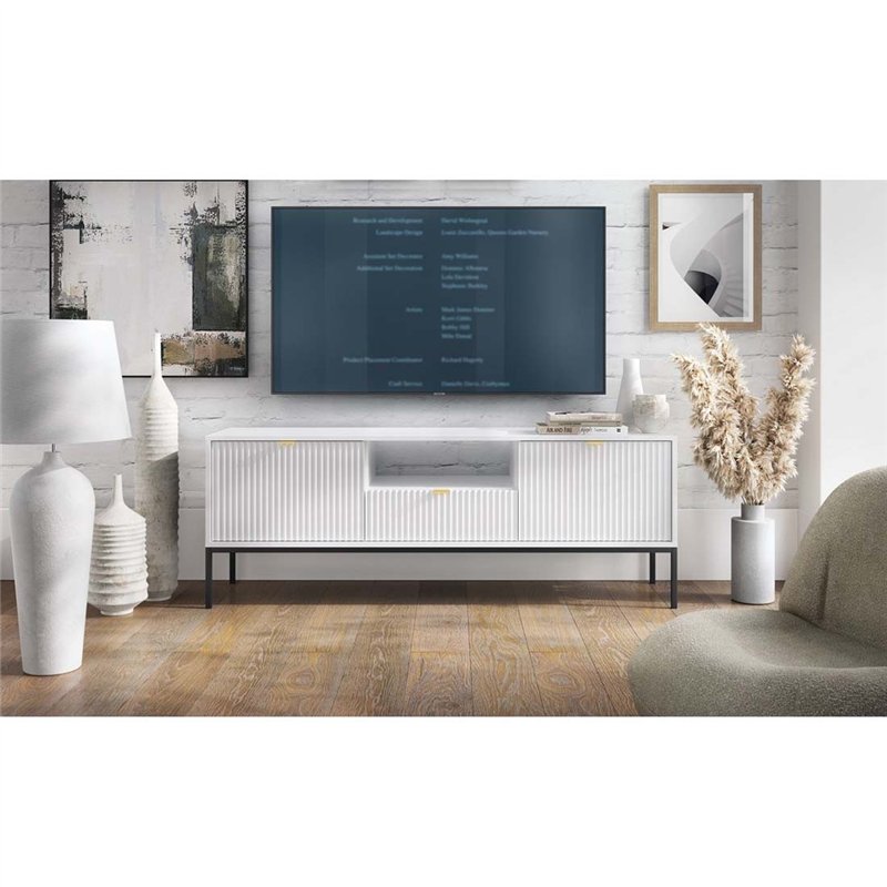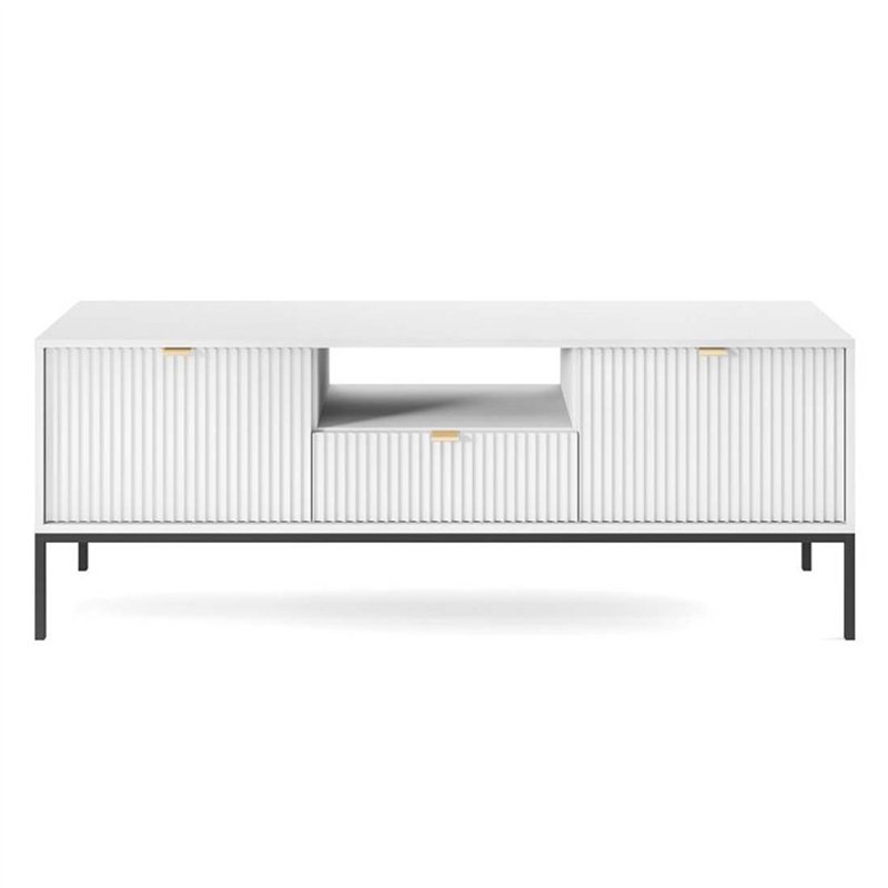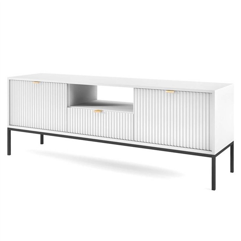 Комод-тумба під ТВ Perfect Home Nova RTV154 2 дверки + 1 шухляда Біла з чорними ніжками