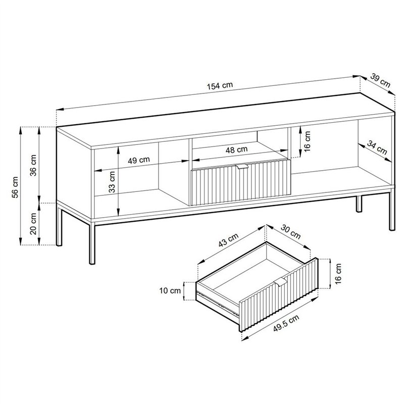 Завдяки сучасному дизайну комод-тумби під ТВ Perfect Home Nova RTV154 2D1S органічно впишеться в інтер'єр вашої спальні, або вітальні. Тумба призначена для тривалої експлуатації і здатна витримувати великі навантаження. Корпус виготовлений із якісного ламінованого ДСП, а фасад із структурного МДФ. Завдяки використанню в тумбі Nova RTV154 2D1S якісної фурнітури вона буде служити вам довго і приносити задоволення від приємної покупки. Тумба має 2 дверки та одну висувну шухляду на телескопічних напрямних повного висуву, що забезпечує легкість у відкритті шухляди та доступ до всіх її куточків. Металеві ніжки, на яких стоїть тумба, додадуть акценту вашому дизайн-проекту.