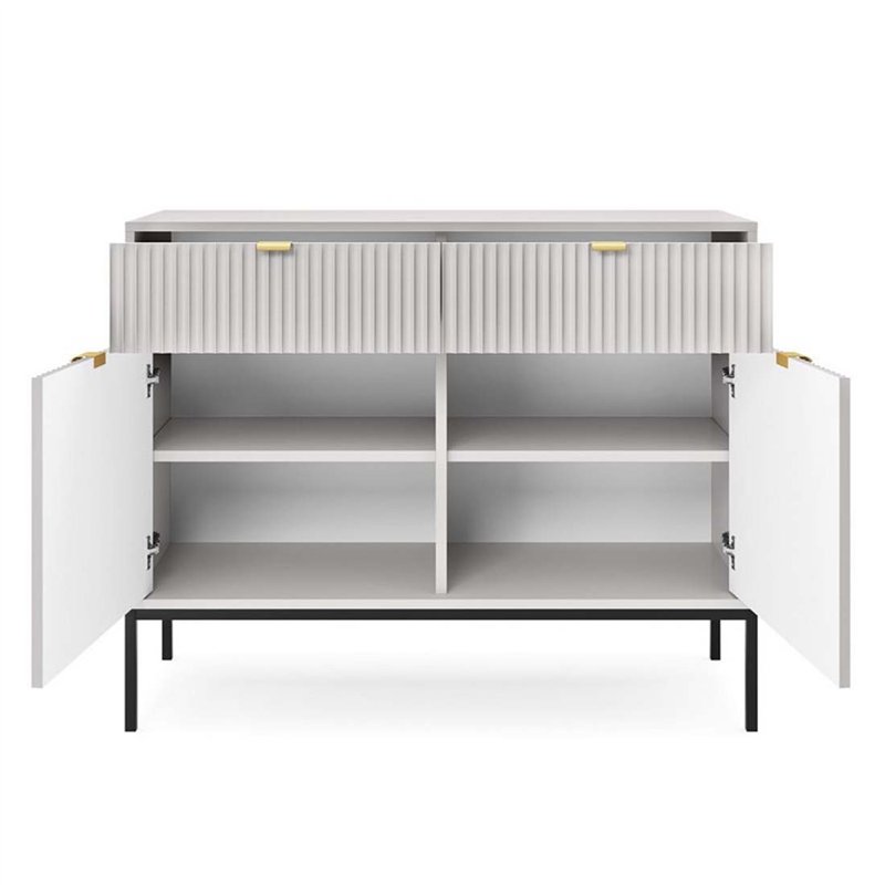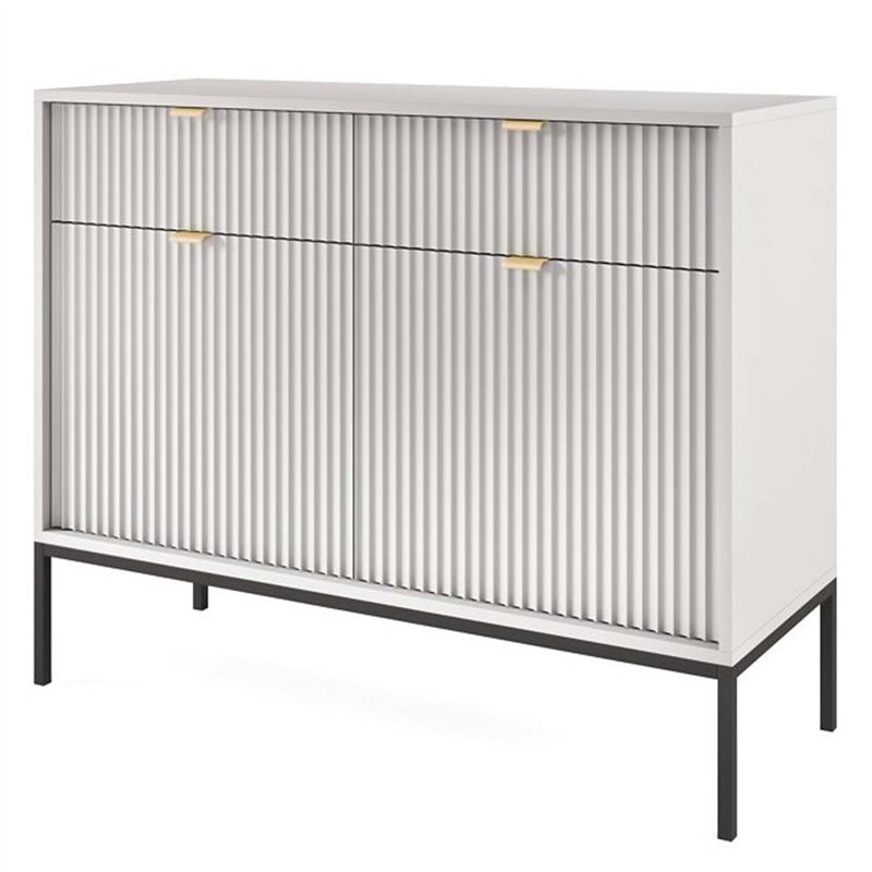 Сучасний комод Nova KSZ104 2D2S від польської меблевої фабрики Perfect Home, безперечно є оригінальним доповненням вашого сучасного інтерєру. Модель має 2 місткі шухляди для білизни, одягу чи аксесуарів, а також 2 розпашні дверки, за якими розташовані полиці, які зручно використовувати для складених речей, коробок або документів. Корпус комода виготовлений із якісного ламінованого ДСП, а фасад із структурного МДФ, які забезпечують довговічність, легкий догляд і привабливий зовнішній вигляд. В комоді Nova KSZ104 2D2S використано телескопічні напрямні повного висуву, що забезпечує легкість у відкритті шухляди та доступ до всіх її куточків. Окрім того ручка та ніжки виготовлені із металу, що забезпечить довгий термін служби, та оригінальний вигляд.