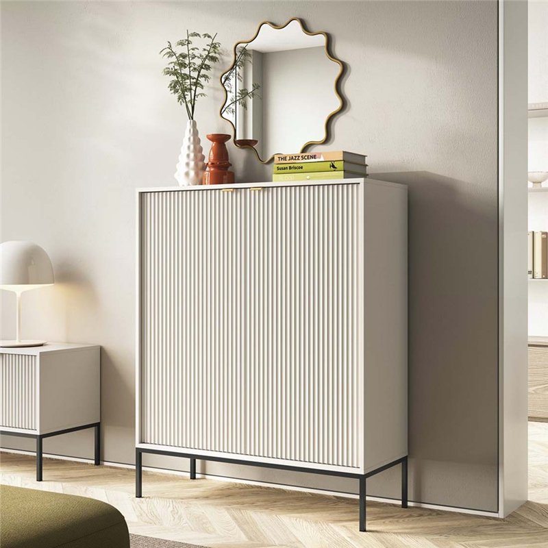 Сучасний комод Nova K104 2D від польської меблевої фабрики Perfect Home, безперечно є оригінальним доповненням вашого сучасного інтерєру. Модель має 2 розпашні дверки, за якими розташовані полиці, які зручно використовувати для складених речей, коробок або документів. Корпус комода виготовлений із якісного ламінованого ДСП, а фасад із структурного МДФ, які забезпечують довговічність, легкий догляд і привабливий зовнішній вигляд. Ручка та ніжки в комоді Nova K104 2D виготовлені із металу, що забезпечить довгий термін служби, та оригінальний вигляд.