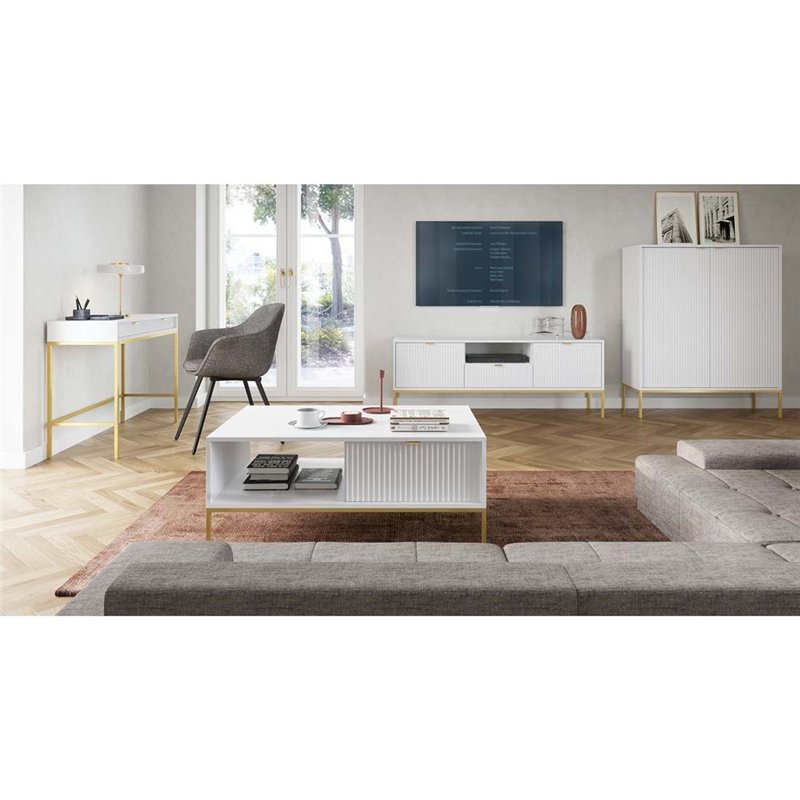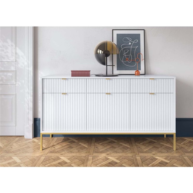 Комод Perfect Home Nova KSZ154 3D3S, 3 дверки + 3 шухляди Білий з золотими ніжками
