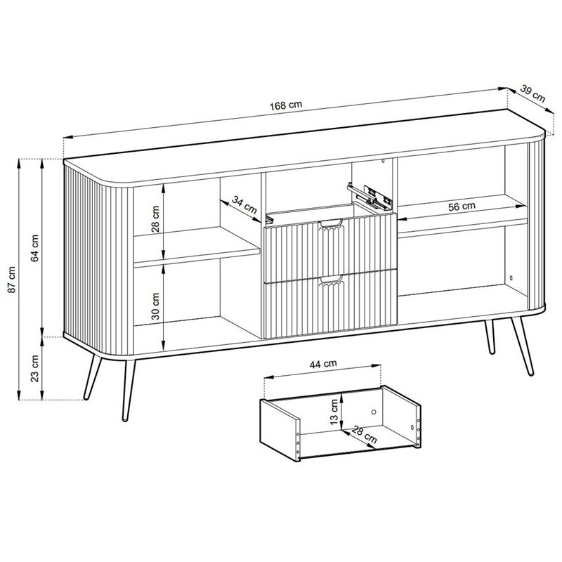 Сучасний комод Zova KSZ168 2D3S від польської меблевої фабрики Perfect Home, безперечно є оригінальним доповненням вашого сучасного інтерєру адже його особливістю є заокруглені форми, які підкреслюють сучасні трендові рішення в меблевій індустрії. Модель має 3 місткі шухляди для білизни, одягу чи аксесуарів, а також 2 розпашні дверки, за якими розташовані полиці, які зручно використовувати для складених речей, коробок або документів. Корпус комода виготовлений із якісного ламінованого ДСП, а фасад із структурного МДФ, які забезпечують довговічність, легкий догляд і привабливий зовнішній вигляд. В комоді Zova KSZ168 2D3S використано телескопічні напрямні повного висуву з дотягами, що забезпечує легкість у відкритті шухляди та доступ до всіх її куточків, а завіси на дверках також мають дотяги, для тихого закриття. Особливої уваги заслуговують втоплені у фасад ручки, які додають оригінальності всьому виробу. Металеві ніжки, на яких стоїть тумба, додадуть акценту вашому дизайн-проекту.