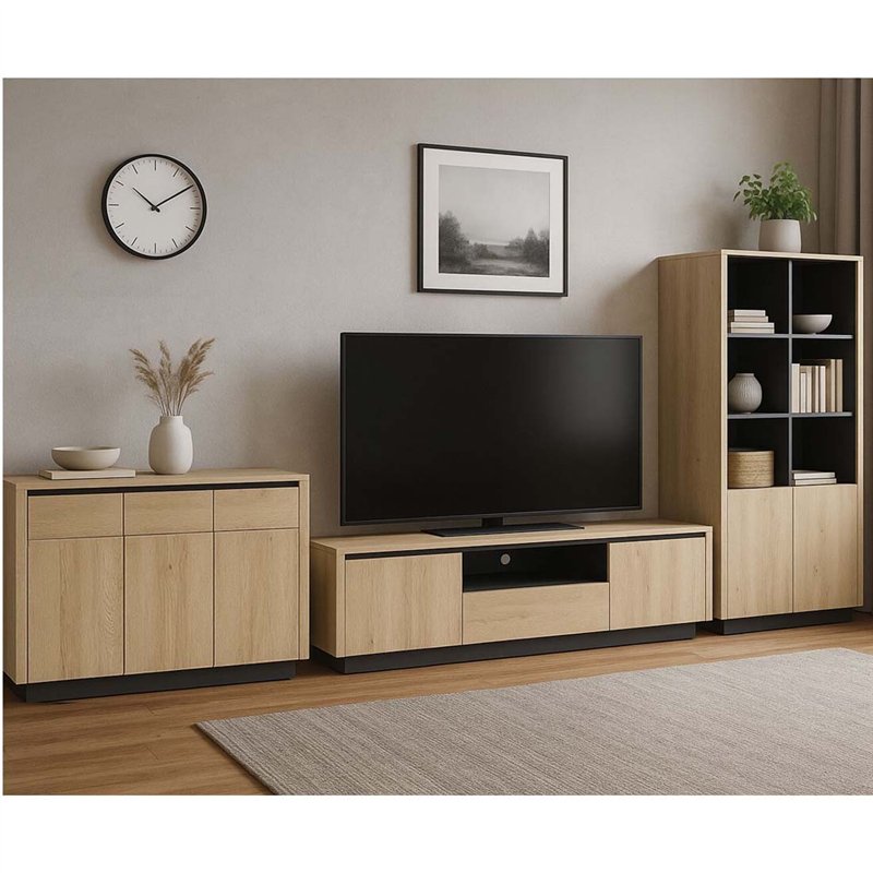 Комод Perfect Home Torro 3D3S/163, 3 дверки + 3 шухляди Дуб Кремона/Чорний