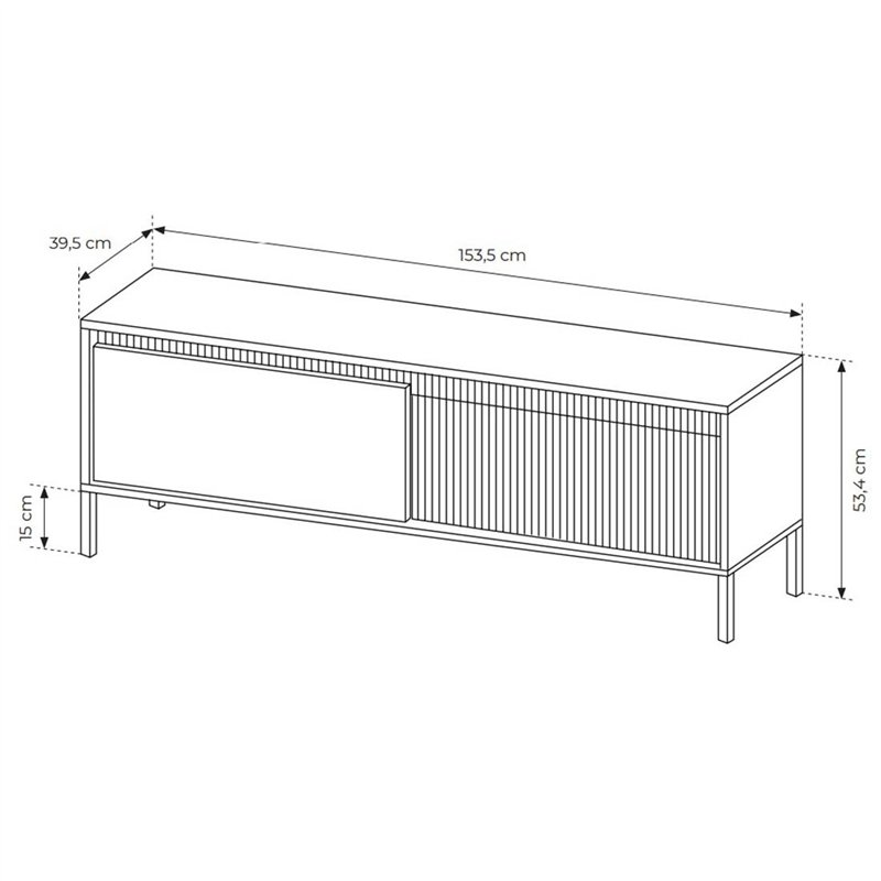 Завдяки оригінальному дизайну комод-тумби під ТВ Perfect Home Senso 2D/153 стане хорошим акцентом у вашому дизайнерському інтерєрі, адже її особливістю є поєднання рифлених фасадів та прямих, які підкреслюють сучасні трендові рішення в меблевій індустрії. Тумба призначена для тривалої експлуатації і здатна витримувати великі навантаження. Корпус виготовлений із якісного ламінованого ДСП, а фасад із структурного МДФ та ламінованого ДСП. Завдяки використанню в тумбі Senso 2D/153 якісної фурнітури вона буде служити вам довго і приносити задоволення від приємної покупки. Тумба має 2 дверки, які відкриваються завдяки системі push to open.