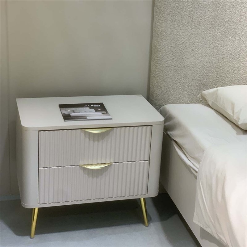 Приліжкова тумба Perfect Home Lante 2S, 2 шухляди Бежева на золотих ніжках