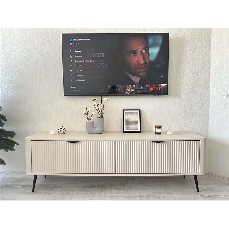 Комод-тумба під ТВ Perfect Home Lante 2D/163, 2 дверки Бежева на золотих ніжках
