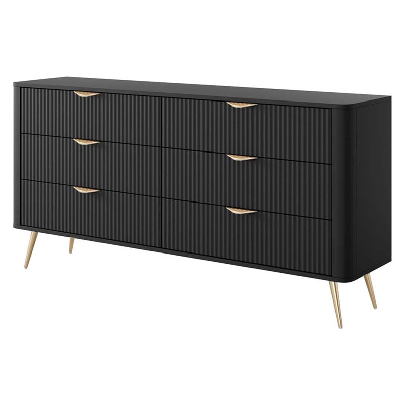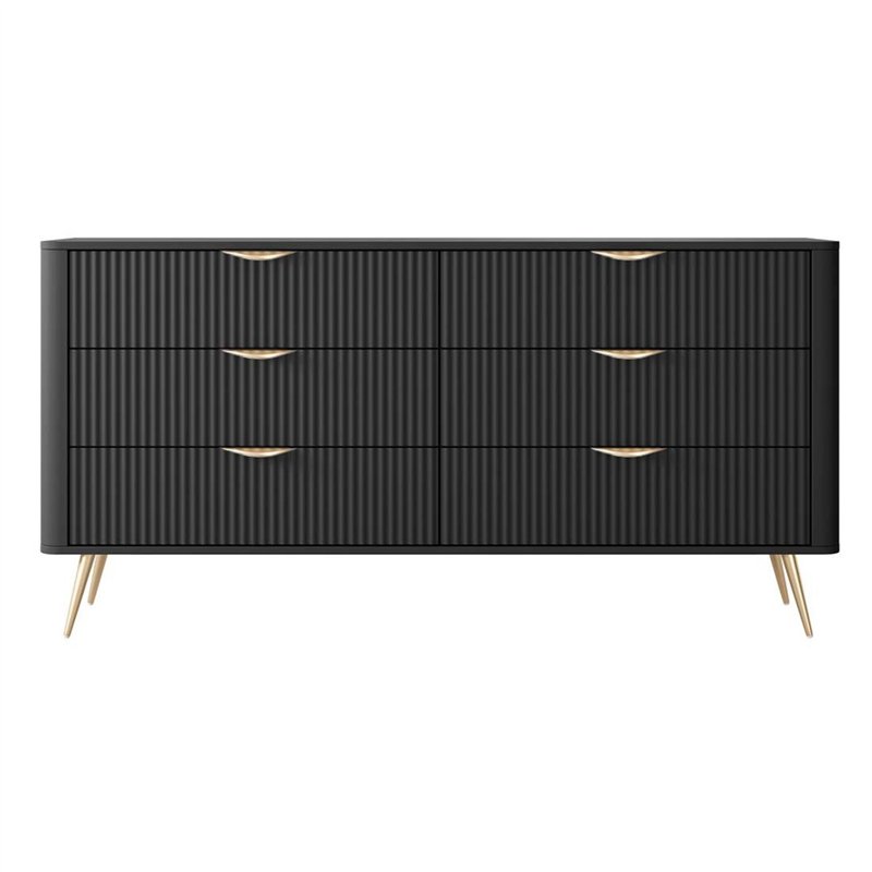 Комод Perfect Home Lante 6S/163, 6 шухляд Чорний на золотих ніжках