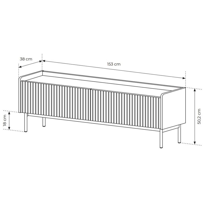 Завдяки оригінальному дизайну комод-тумби під ТВ Perfect Home Level 2D/153 стане хорошим акцентом у вашому дизайнерському інтерєрі, адже у її конструкції використано оригінальні рішення, а саме: фасад тумби виготовлений з структурного МДФ а металеві ніжки пофарбовані в бежевий колір, дверки відкриваються за допомогою системи Push-To-Open. Тумба призначена для тривалої експлуатації і здатна витримувати великі навантаження. Корпус виготовлений із якісного ламінованого ДСП, а фасад із структурного МДФ. Завдяки використанню в тумбі Level 2D/153 якісної фурнітури вона буде служити вам довго і приносити задоволення від приємної покупки. Металеві ніжки, на яких стоїть тумба, додадуть акценту вашому дизайн-проекту.