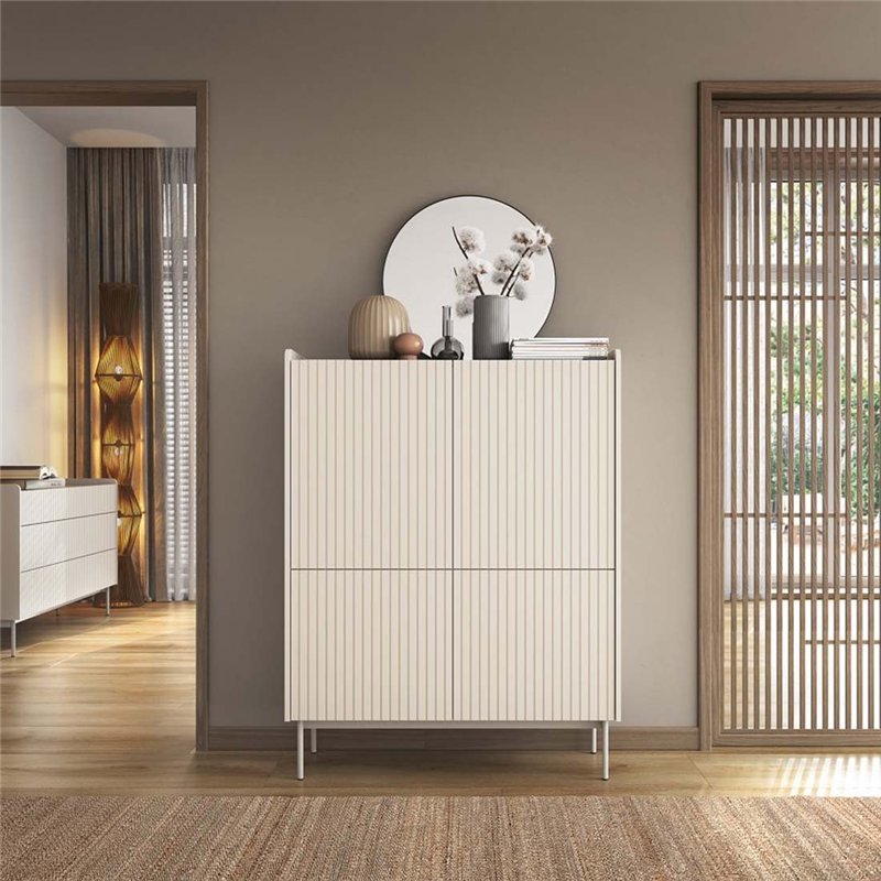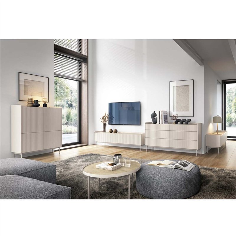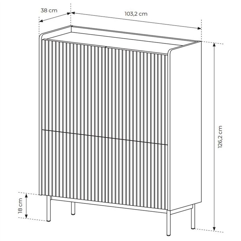 Сучасний комод Level 4D/103 від польської меблевої фабрики Perfect Home, безперечно є оригінальним доповненням вашого сучасного інтерєру. Модель має 4 дверки за якими розташовані полички. Корпус тумби виготовлений із якісного ламінованого ДСП а фасад із структурного МДФ які забезпечують довговічність, легкий догляд і привабливий зовнішній вигляд. Окрім того ніжки виготовлені із металу, що забезпечить довгий термін служби, та оригінальний вигляд. Комод не тільки створює гарний та охайний вигляд в кімнаті а й організує зберігання необхідних речей.