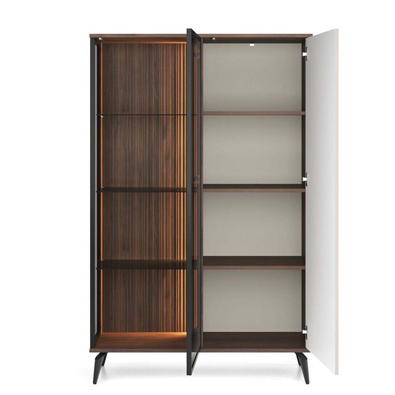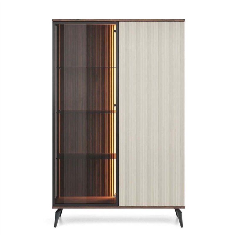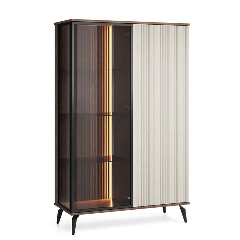 Пенал Perfect Home Vici KSZ103 2D, 2 дверки зі склом Горіх/Кашемір з підсвіткою