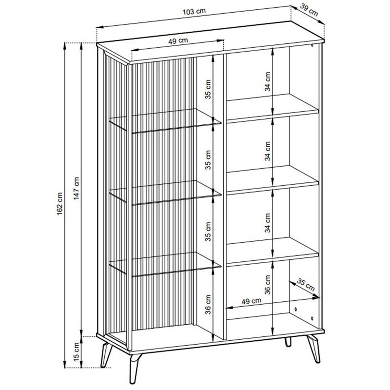 а скляні дверки з внутрішньою підсвіткою стануть роздинко кімнати. Пенал призначений для тривалої експлуатації і здатний витримувати великі навантаження. Корпус виготовлений із якісного ламінованого ДСП, а фасад із структурного МДФ та скла. Завдяки використанню в пеналі Vici KSZ103 2D якісної фурнітури він буде служити вам довго і приносити задоволення від приємної покупки. Металеві ніжки, на яких стоїть пенал, додадуть акценту вашому дизайн-проекту.