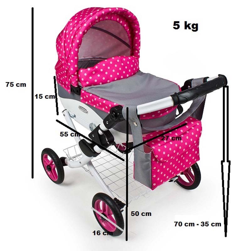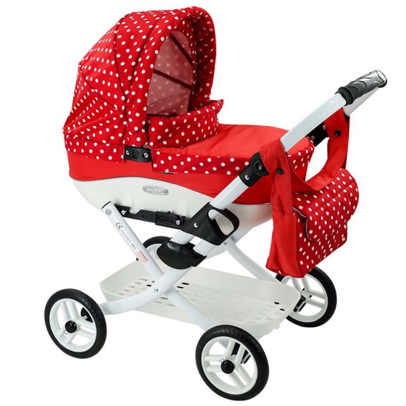 Дитяча коляска для ляльки Adbor Lily LC-12 червоний горошок на червоному
