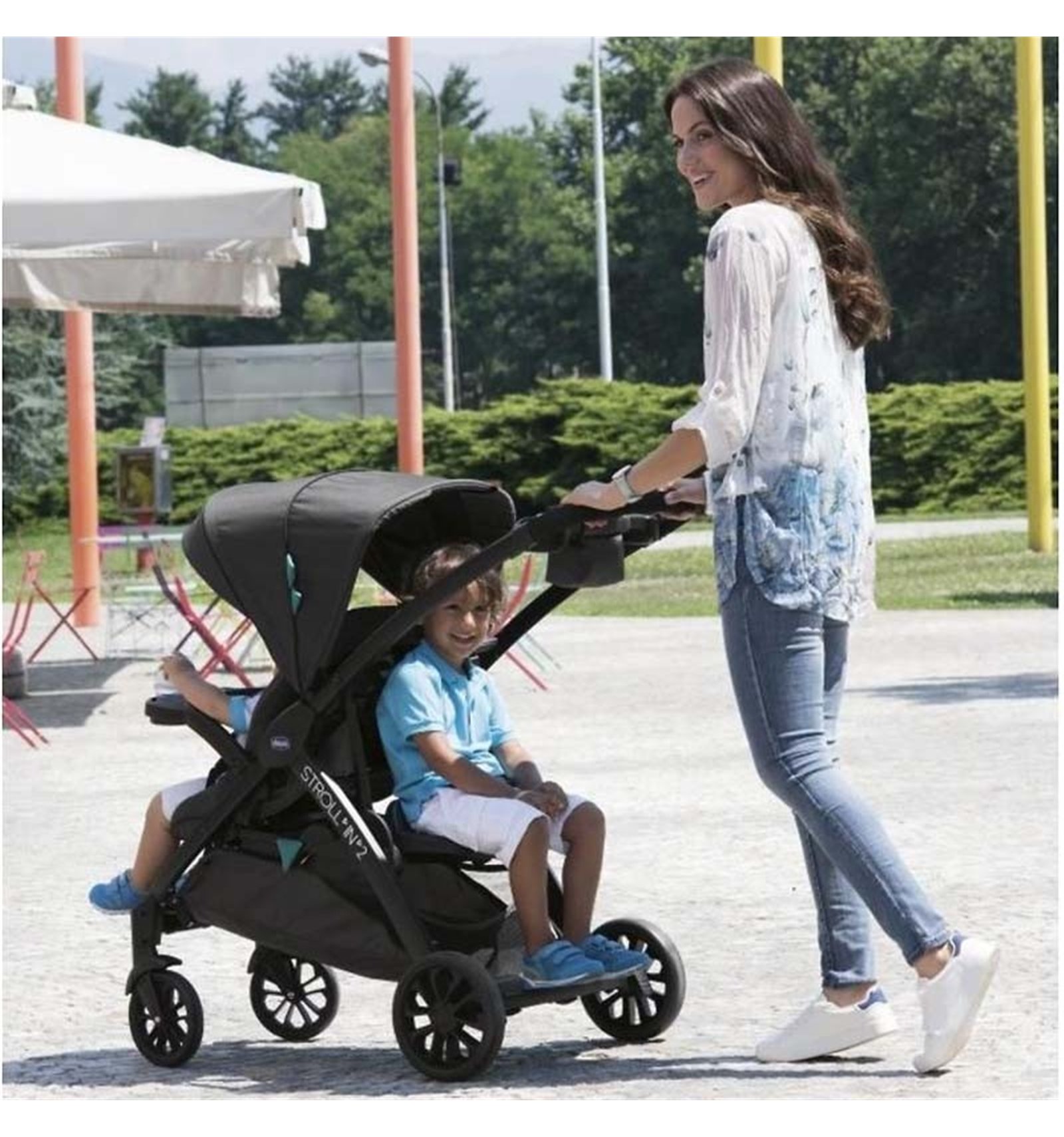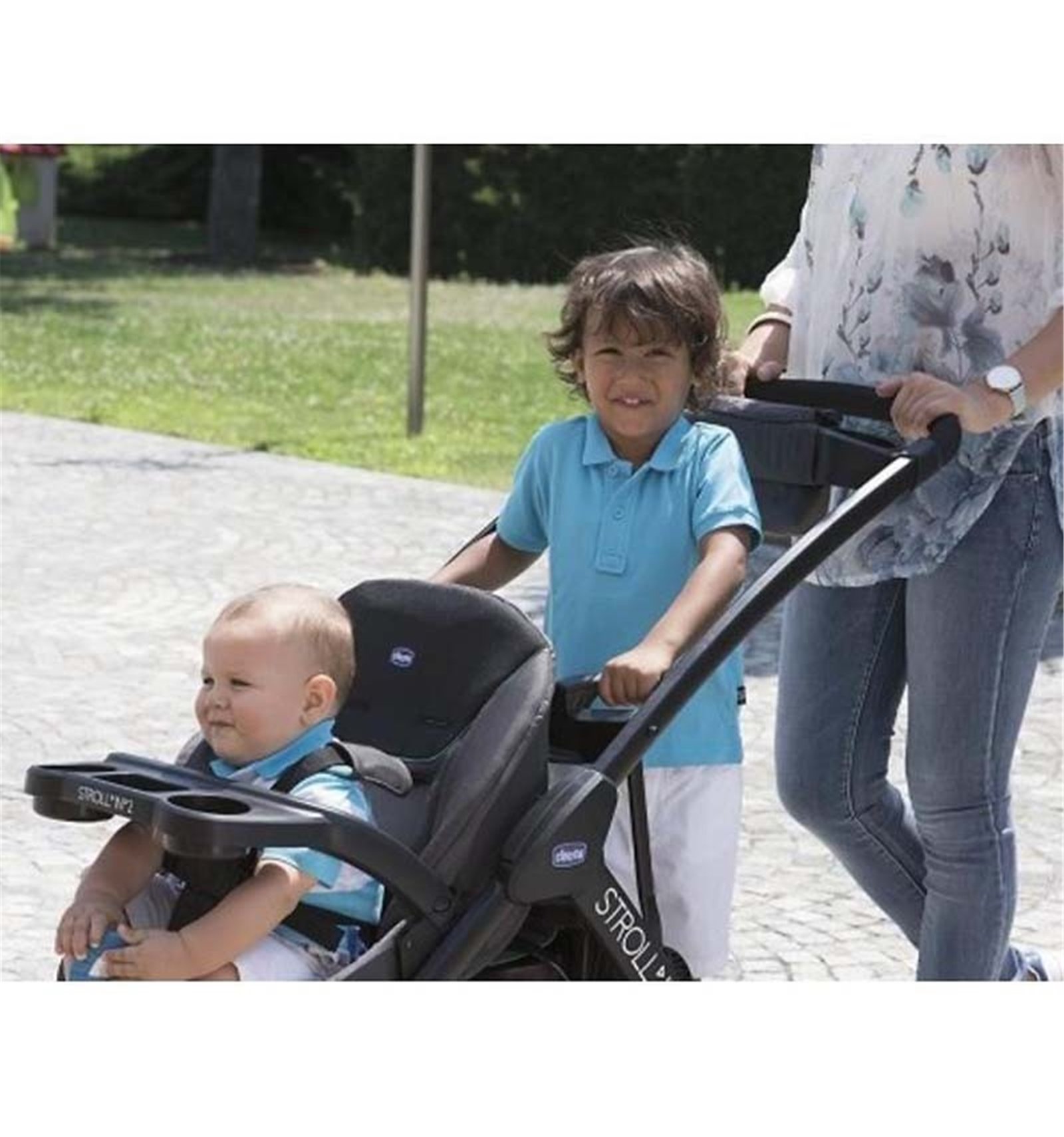 Stroll'in'2 - ідеальна коляска для перевезення двох дітей різного віку. Stroll'in'2, що складається з двох місць та платформи, гарантує універсальність та зручність у кожній ситуації. На передньому сидінні можна прикріпити автомобільне крісло (в комплект не входить).