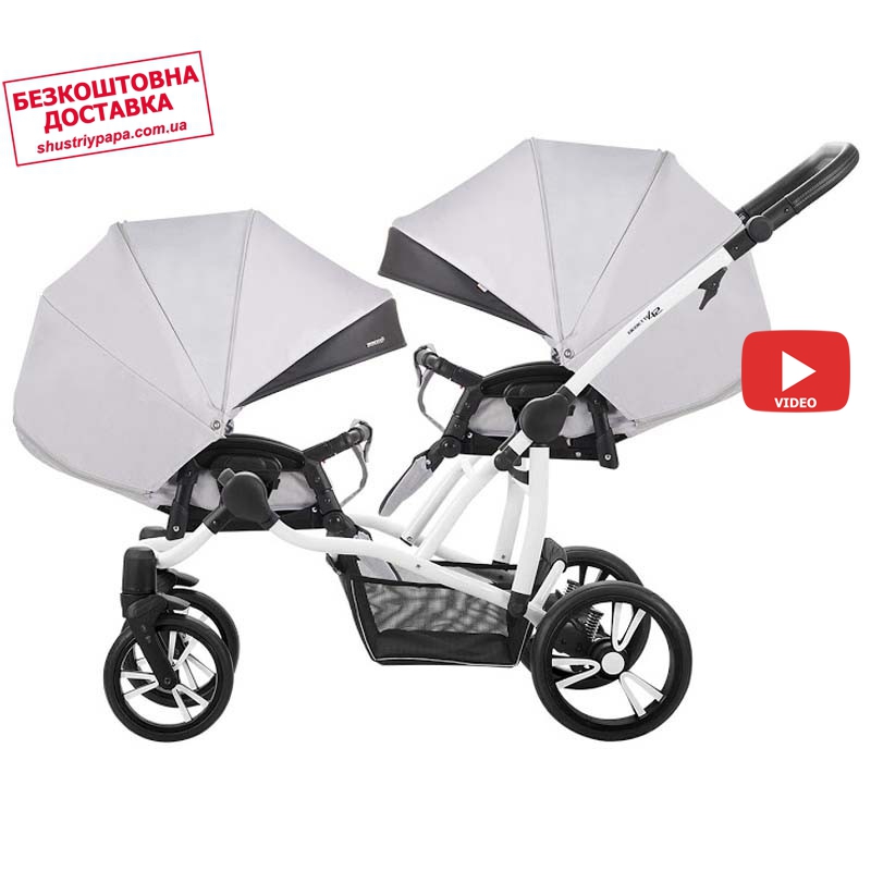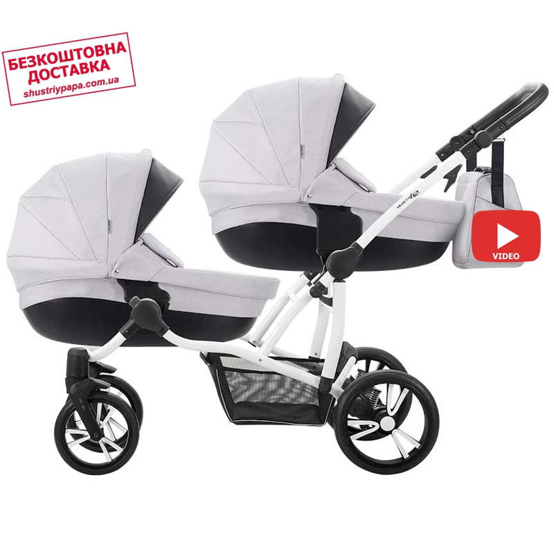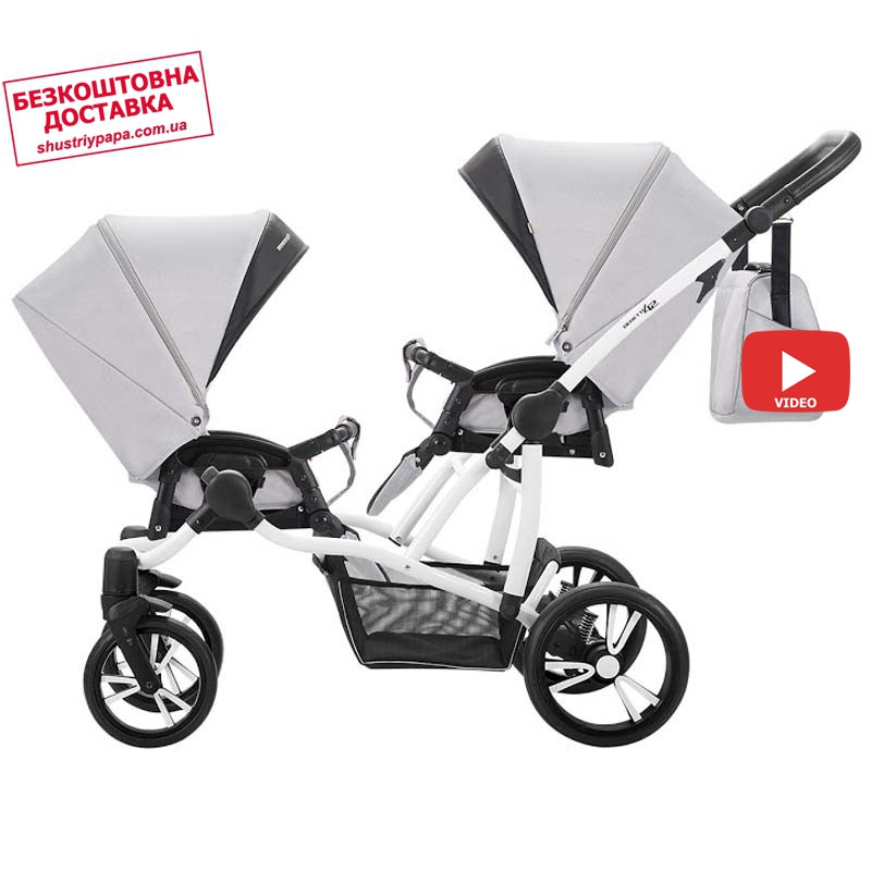 Bebetto42 New – це оновлена версія коляски для двійні Bebetto42, яка завдяки прогресивним інноваційним технологіям стала ще більш функціональнішою та комфортнішою для батьків і дітей. Основною перевагою конструкції Bebetto42, в першу чергу, є її ідеальна збалансованість та стійкість. Конструкція коляски оснащена новим механізмом складання шасі та видозміненою конструкцією днища люльки, всі елементи для днища виготовляються з легкого високотехнологічного пластику. Завдяки цим розробкам загальну вагу коляски зменшено на 2,2 кг при комплектації з люльками, та на 1,6 кг – з прогулянковими блоками. Оновлена коляска відрізняється відмінними характеристиками керування. Навіть при повному навантаженні надувні колеса зберігають високу маневреність. А завдяки розміщенню блоків в один ряд «паровозиком» коляска компактна, відносно вузька за розмірами. Це забезпечує високу прохідність та дає можливість комфортно пересуватися по вузьких тротуарах та проходах, і в той же час, це надає зручний доступ до люльки та прогулянкового блоку у будь-якій комплектації.